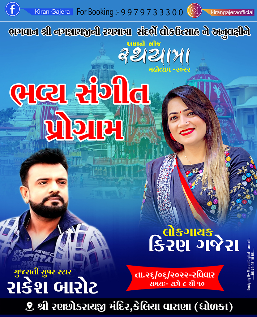LIVE PERFORMANCE AT RATHYATRA MAHOTSAV,RANCHHODRAYJI TEMPAL,KELIYA DHOLKA.